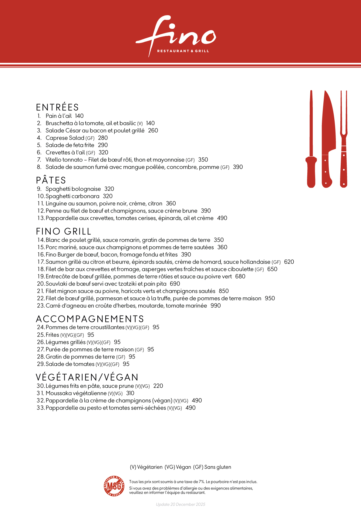 Fino Restaurant Dinner Menu