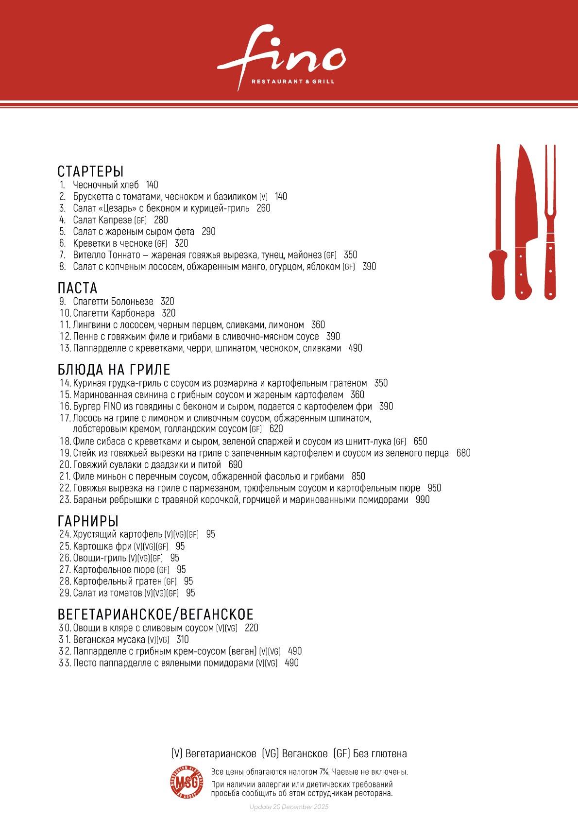 Fino Restaurant Dinner Menu