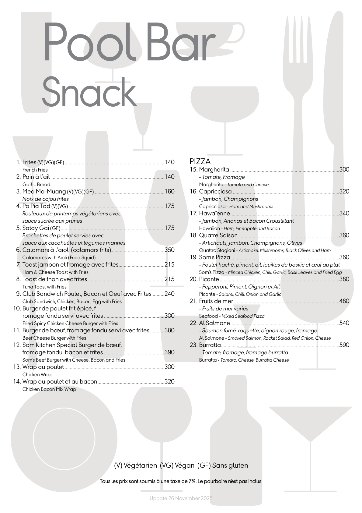 Menu Snack du bar de la piscine Français Snack du bar de la piscine Retour à la sélection de la langue