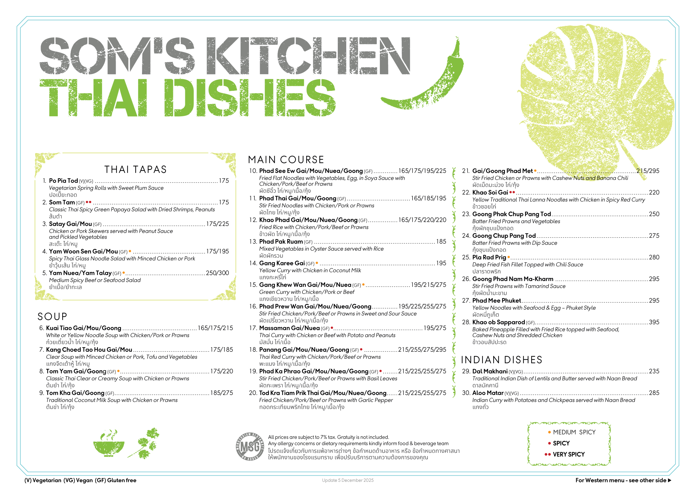Som's Kitchen Lunch Menu