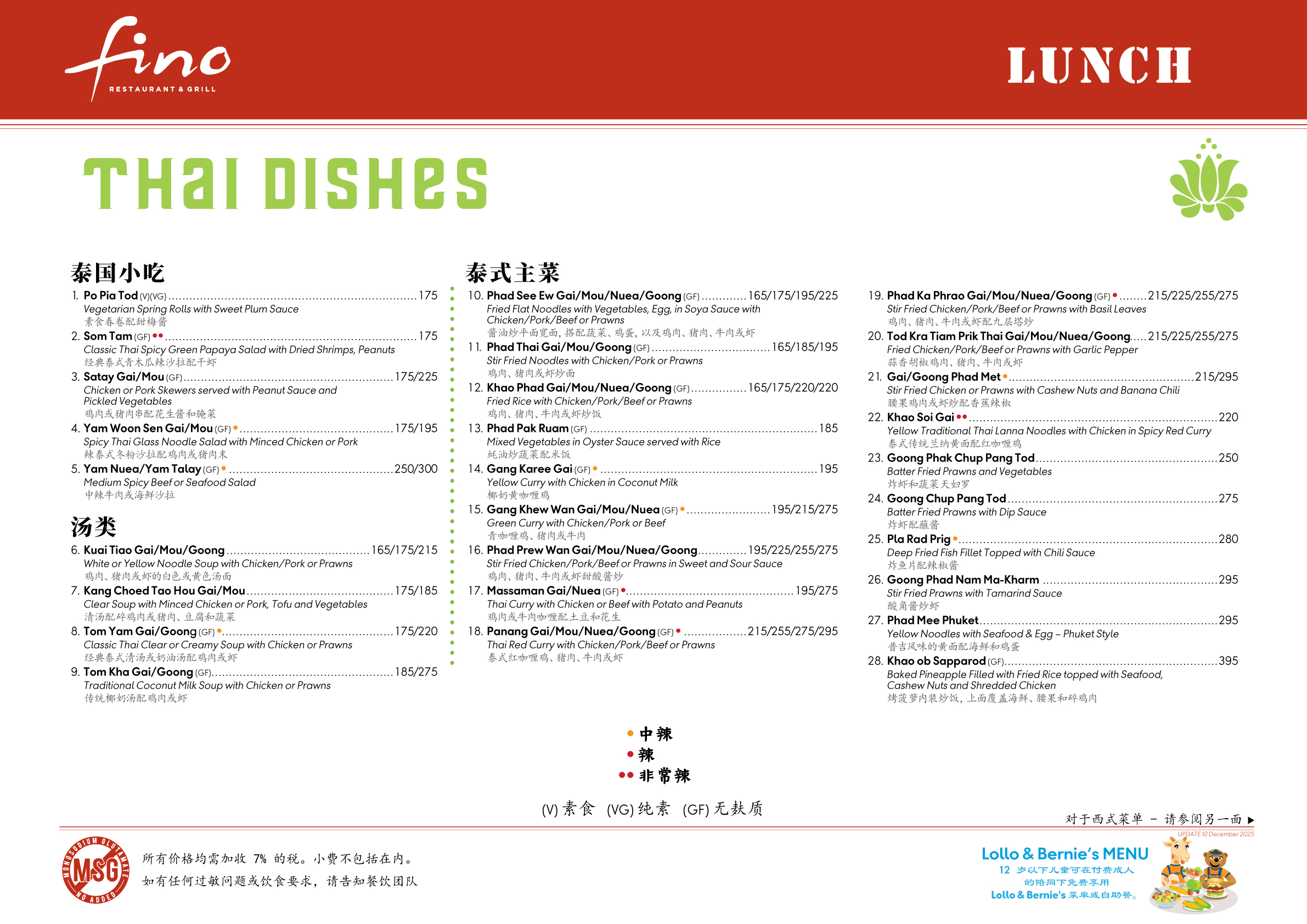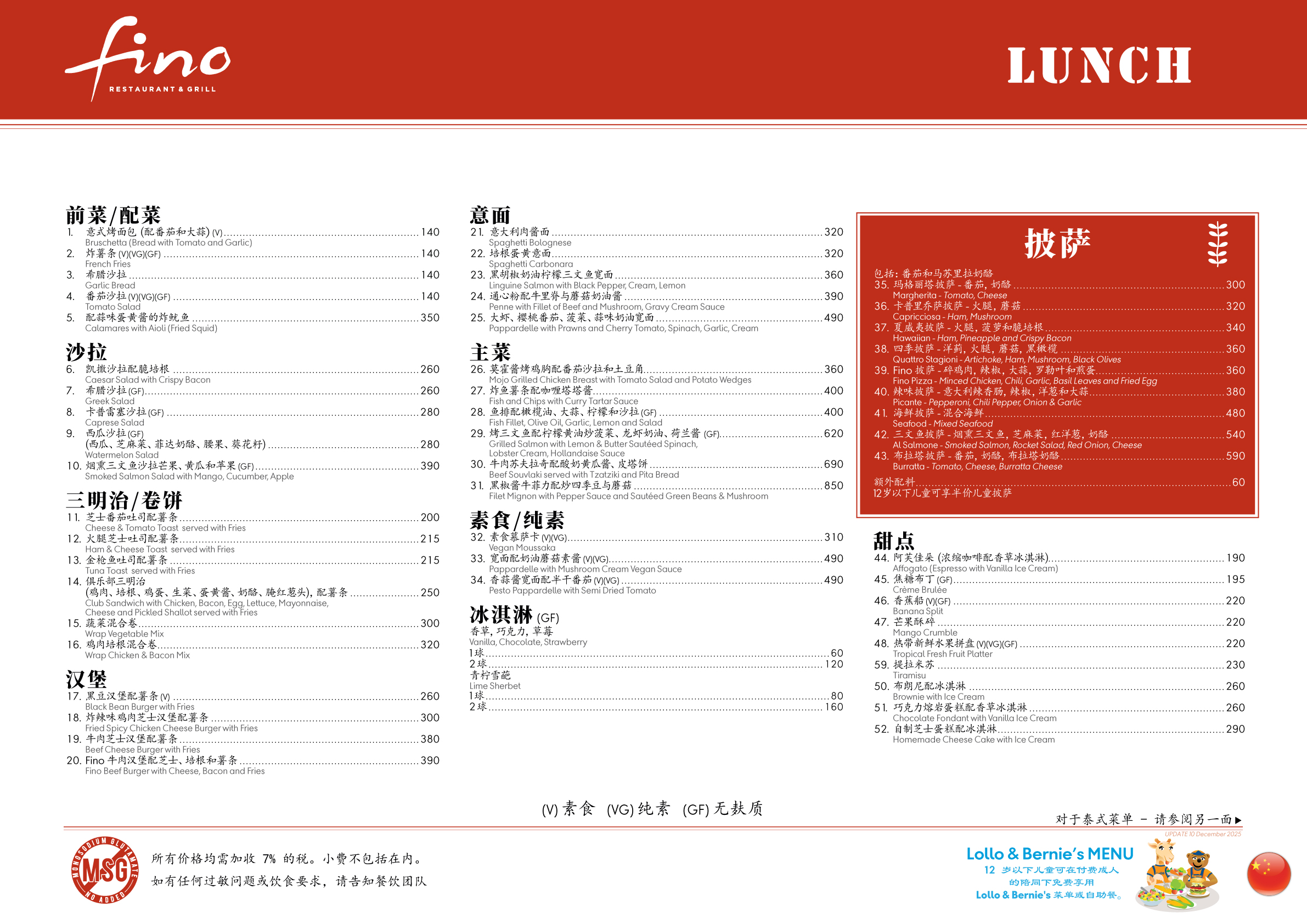 Fino Restaurant Lunch Menu