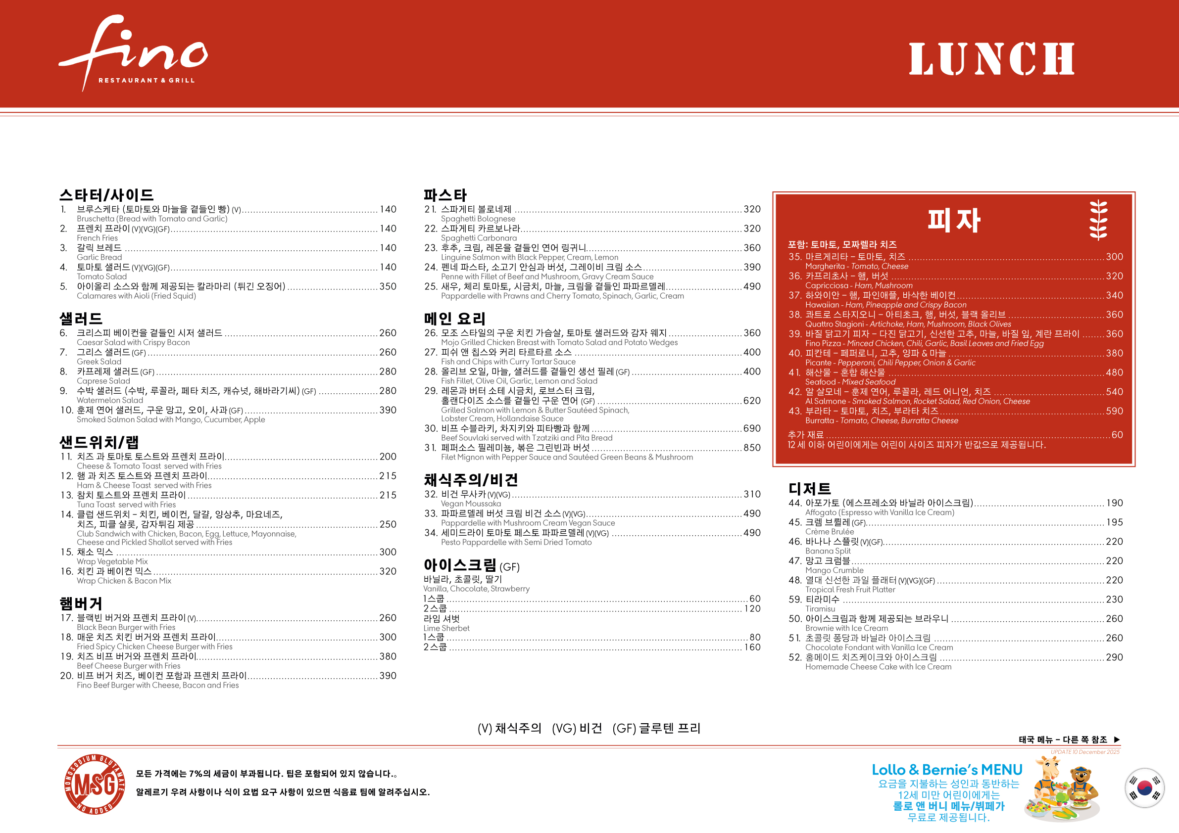 Fino Restaurant Lunch Menu