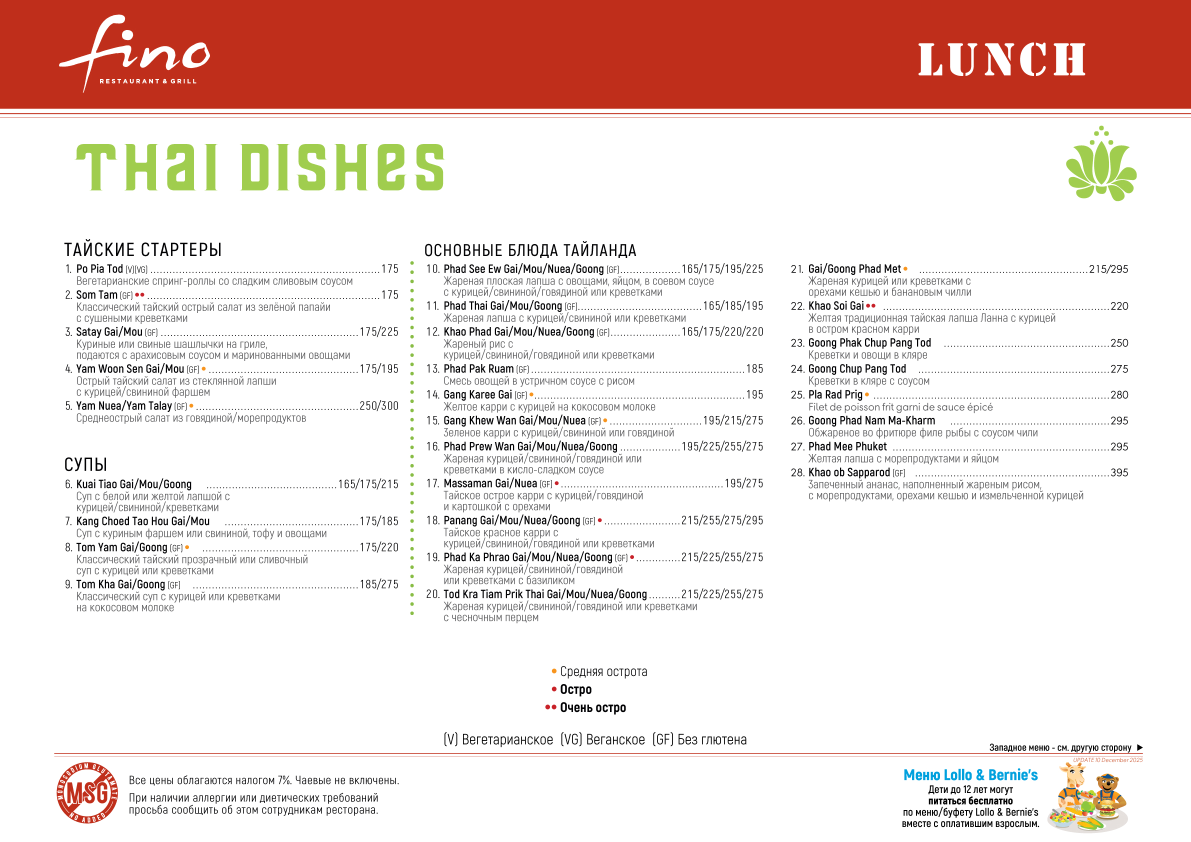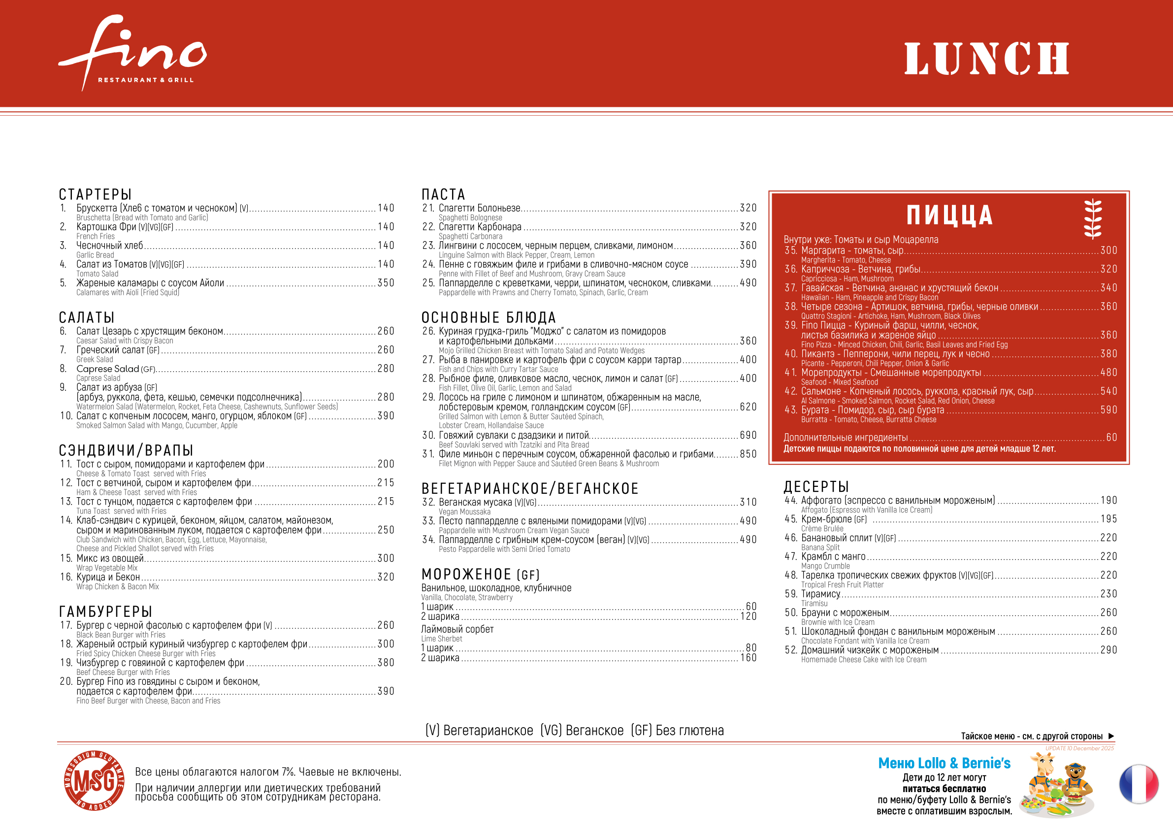 Fino Restaurant Lunch Menu