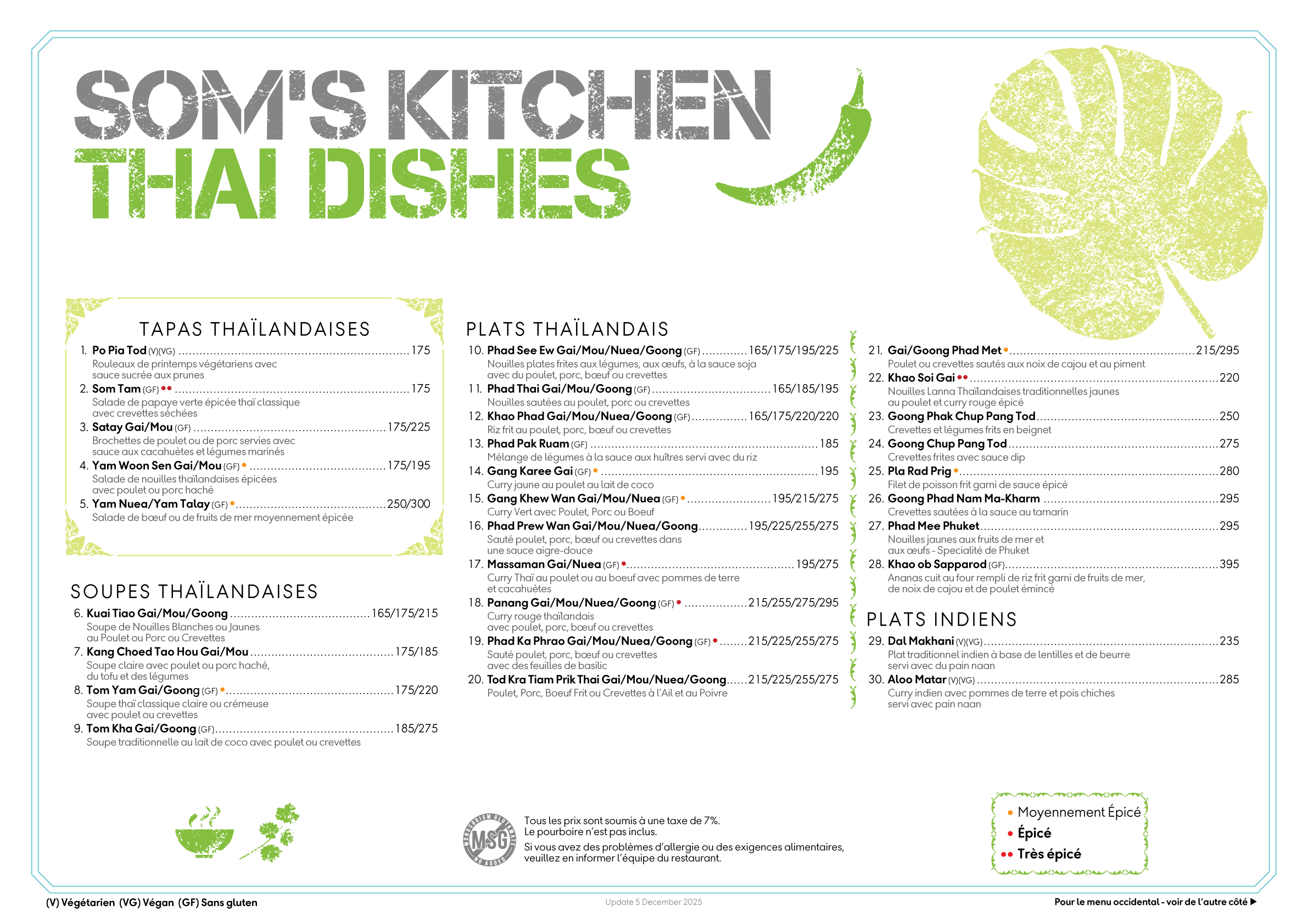 Menu du Déjeuner