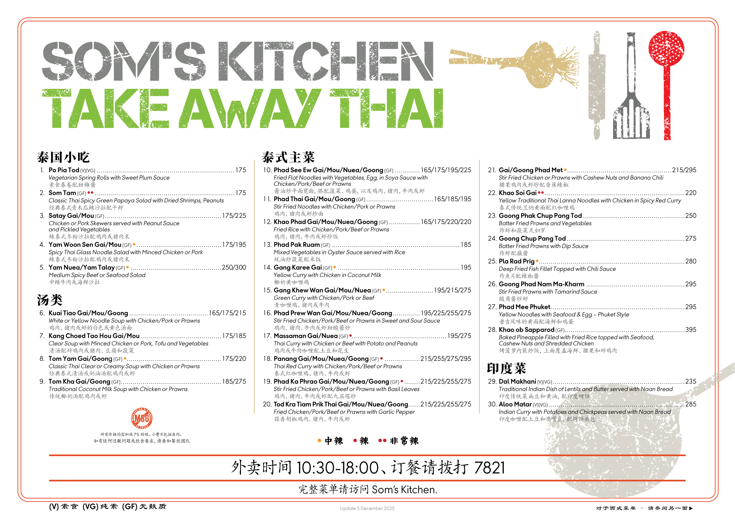 完整菜单请访问 Som’s Kitchen.